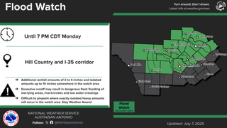 Forecasters are warning that parts of central Texas remain at risk of flash flooding and heavy rans throughout Monday.